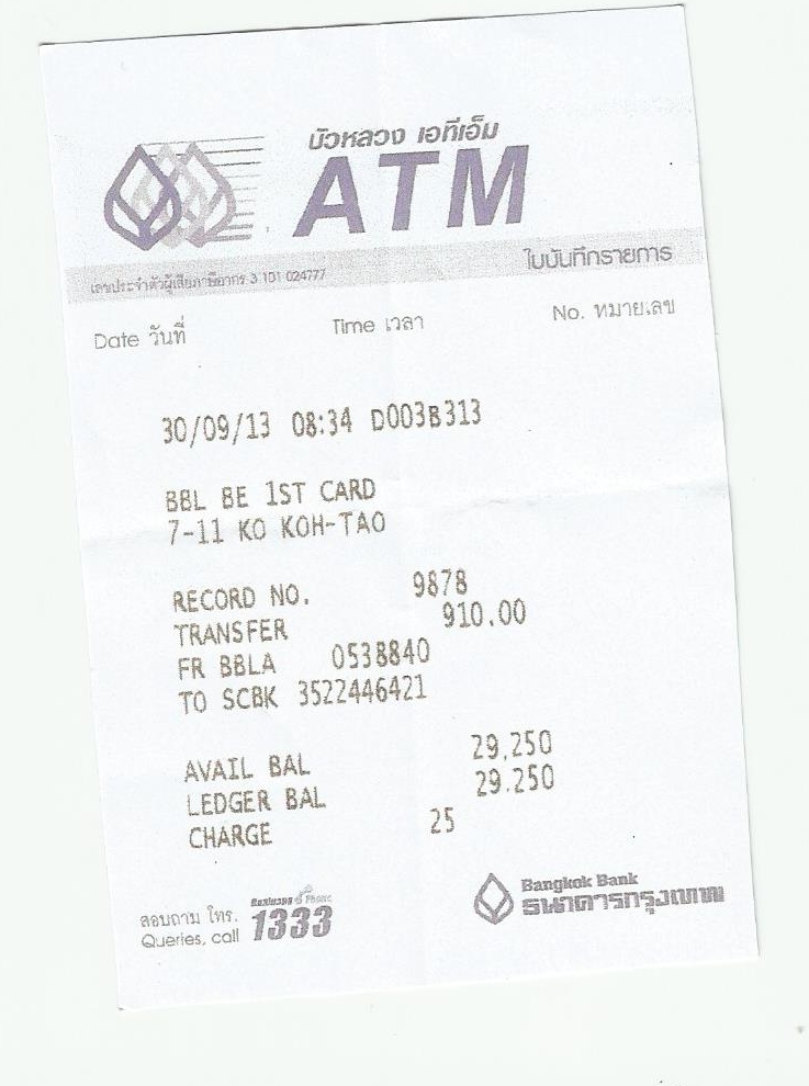 ก็มาดูสลิปอีกที อ๋อ..เข้าธ.ไทยพาณิชย์ แล้วทำไมไม่มี SMS แจ้งเงินเข้า แปลกใจ ลองเช็คดูอีกที ก็ไม่มีเงินเข้ามาจริง ๆ นึกในใจ เหอะ ๆ กรูโดนอีกแล้ว แต่คงด้วยบุญกุศลแต่ชาติปางก่อน ดลบันดาลให้เราเอ๊ะใจ