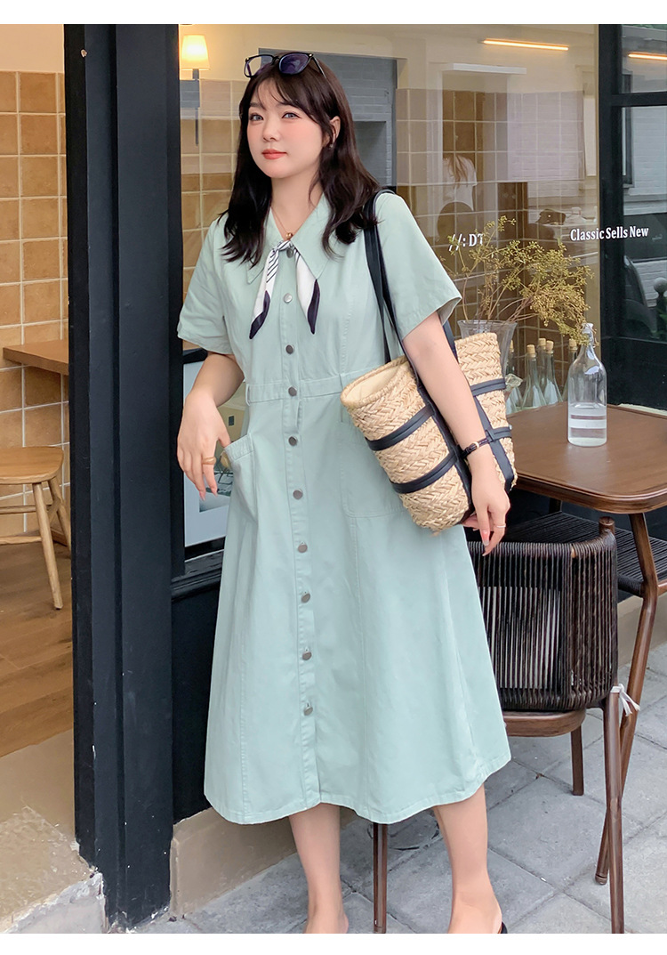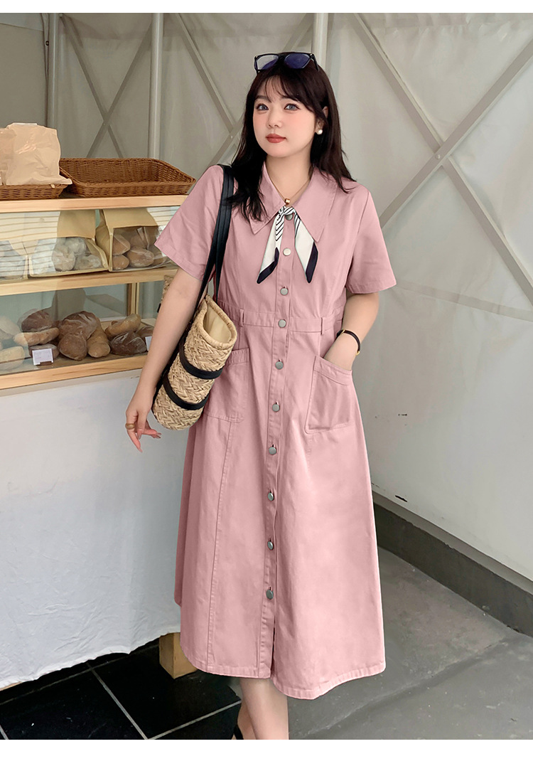 ชุดเดรสยาวสาวอวบ สไตล์วินเทจผ้ายีนส์เบาสบาย 📏 ไซส์ (นิ้ว)