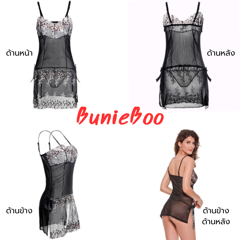 ชุดนอนไม่ได้นอนคนอ้วน ชุดนอนซีทรูลูกไม้ ชุดนอนสุดเซ็กซ๊่+จีสตริง