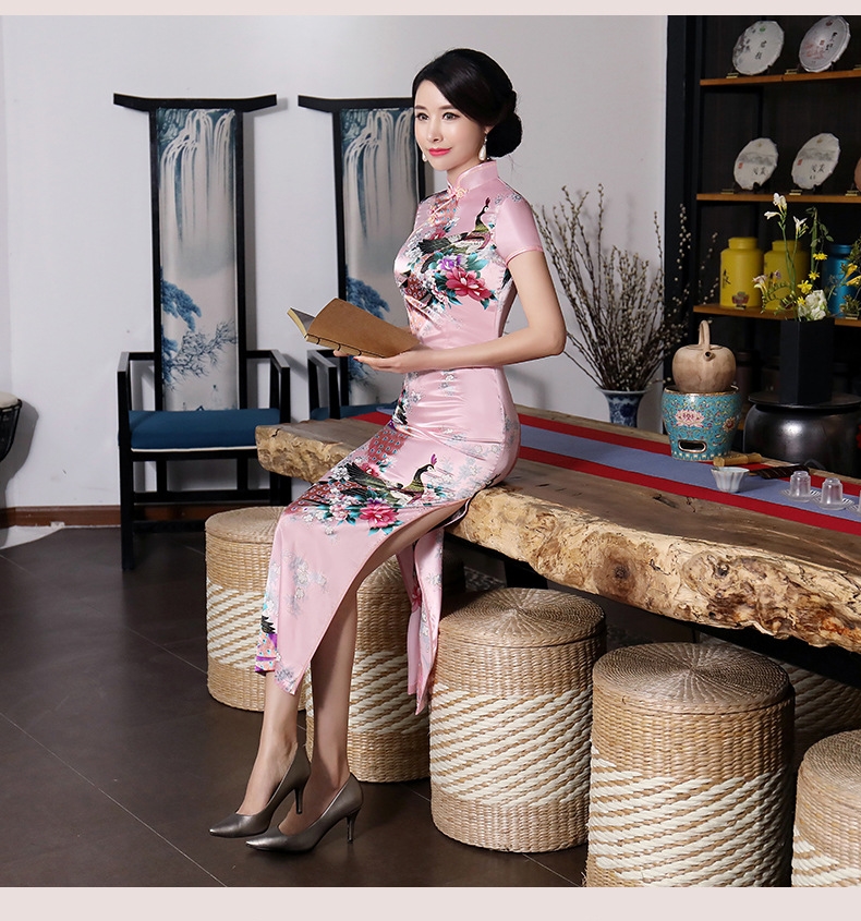 ชุดกี่เพ้าสีชมพูลายนกยูง (ไซส์ใหญ่) เสริมความอ่อนหวานและสง่างามในเวลาเดียวกันด้วย ชุดกี่เพ้าสีชมพูลายนกยูง ดีไซน์คลาสสิก คอจีน แขนสั้น พร้อมผ่าข้าง เน้นความเป็นผู้หญิงด้วยลวดลายนกยูงอันสวยงาม ผสมผสานความหรูหราและความสะดวกสบายในทุกโอกาส รายละเอียดสินค้า: