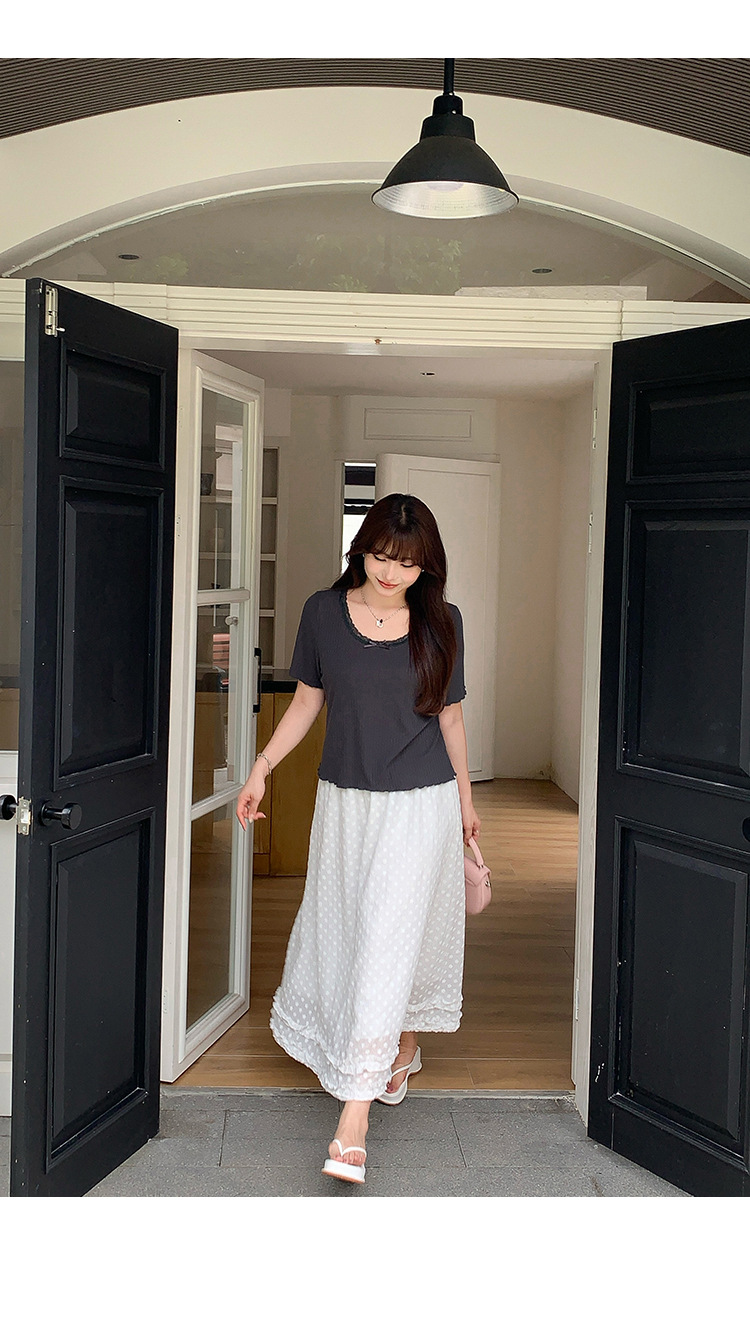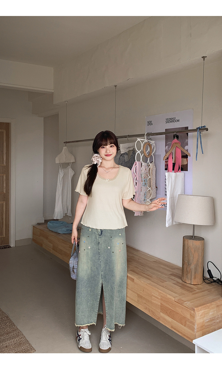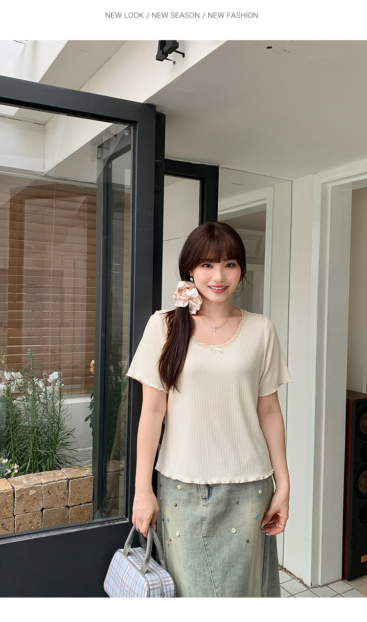💟 เสื้อยืดคอยูแต่งโบว์ลูกไม้น่ารัก เสื้อแฟชั่นสาวอวบ ทรงสวยมากกเป็นเสื้อยืดผ้าร่อง แต่งริ้ว ปลายแขนและชายเสื้อ เกรดพรีเมียม นิ่มแต่มีน้ำหนัก ผ้าคือดีแบบไม่จกตา ใส่สบายสุดๆ