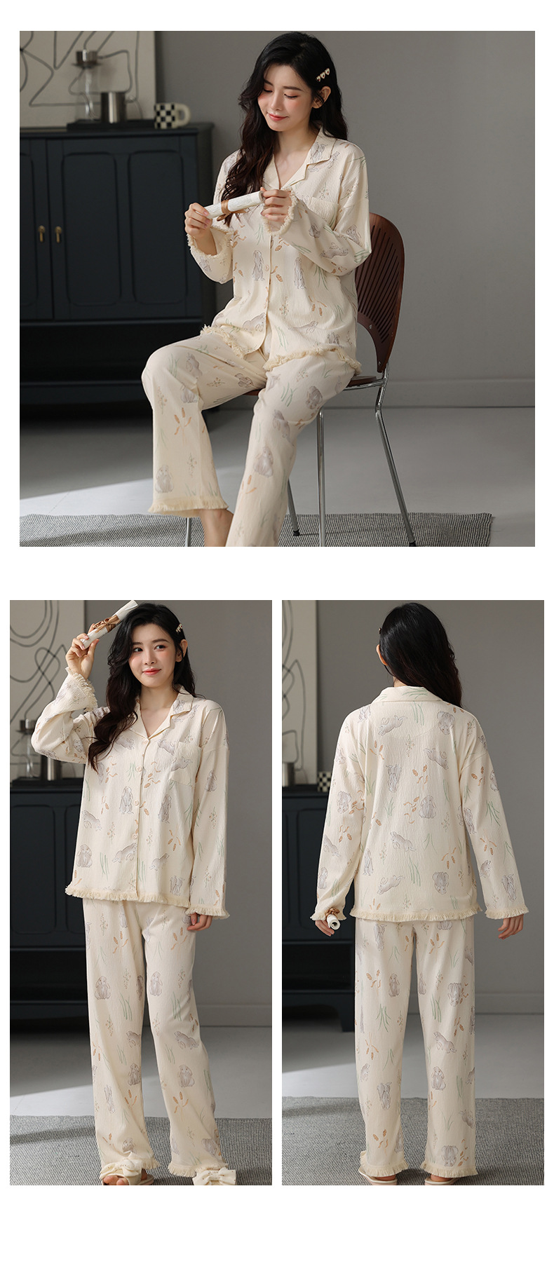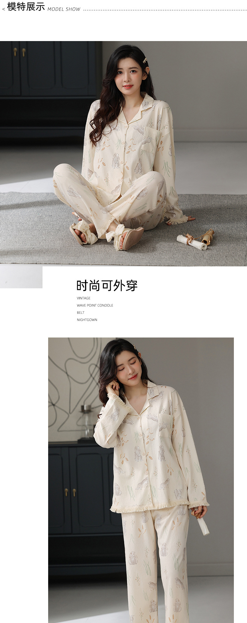 ชุดนอนมินิมอลผ้าฝ้ายอัดย่น แขนยาว+ขายาว